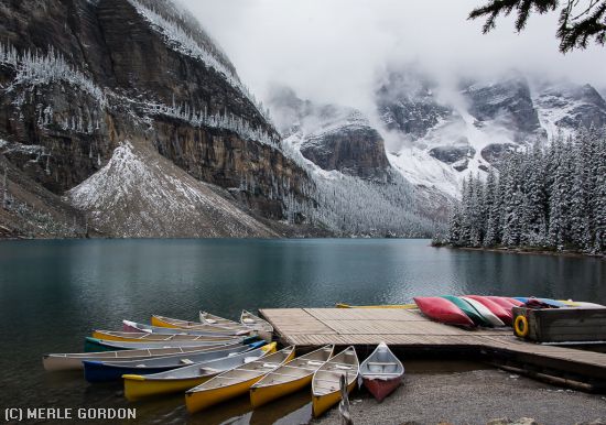 "EARLY SNOW AT MORAINE LAKE"