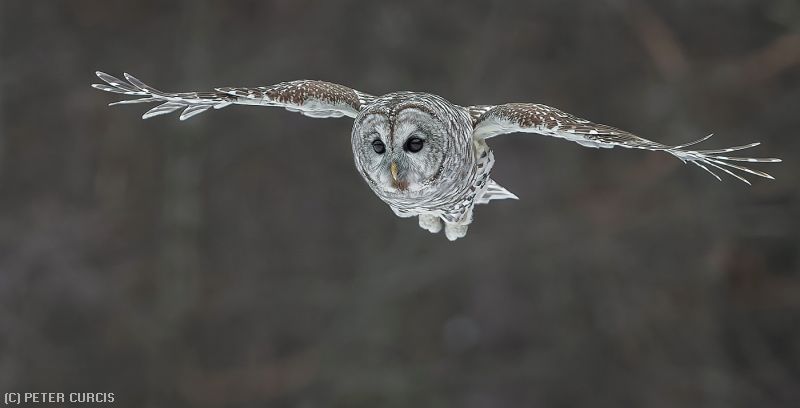 "BARRED OWL IN FLIGHT"