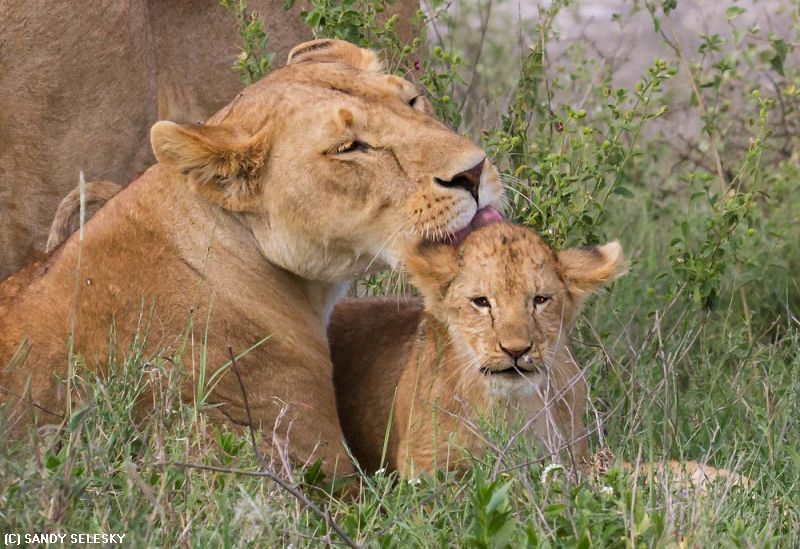 "LIONESS LICKS HER CUB"